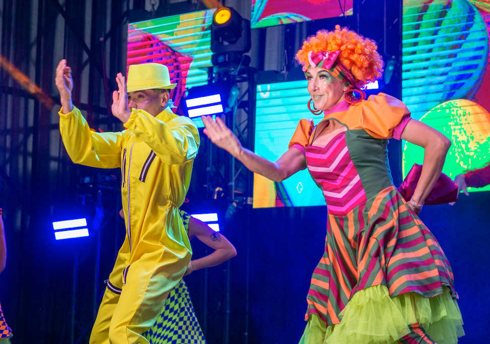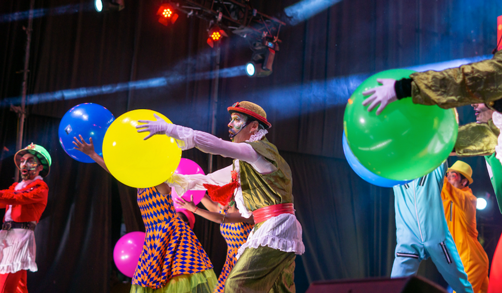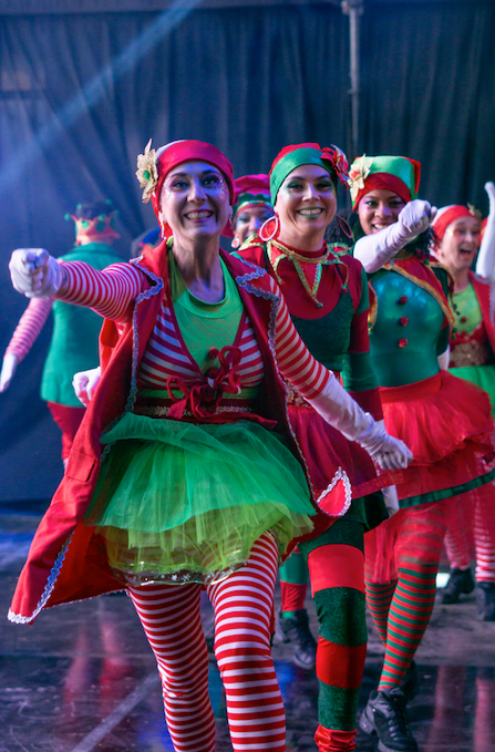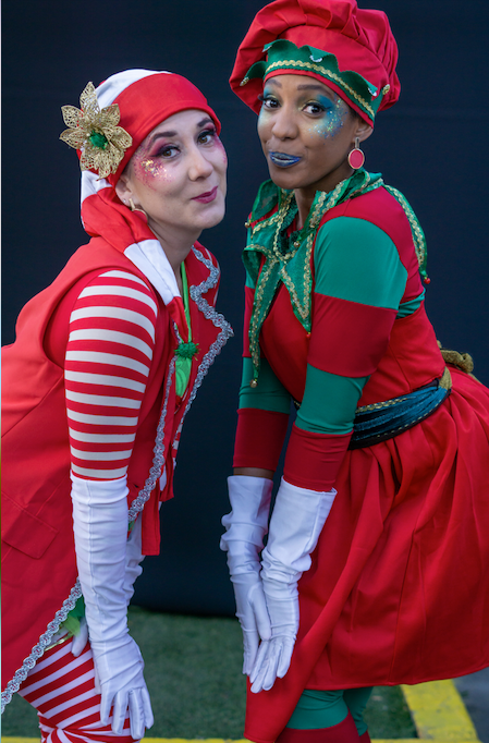 Despliegue artístico. Carnaval Navideño donde fabulosos duendes nos envuelven con cantos, coreografías y acrobacias